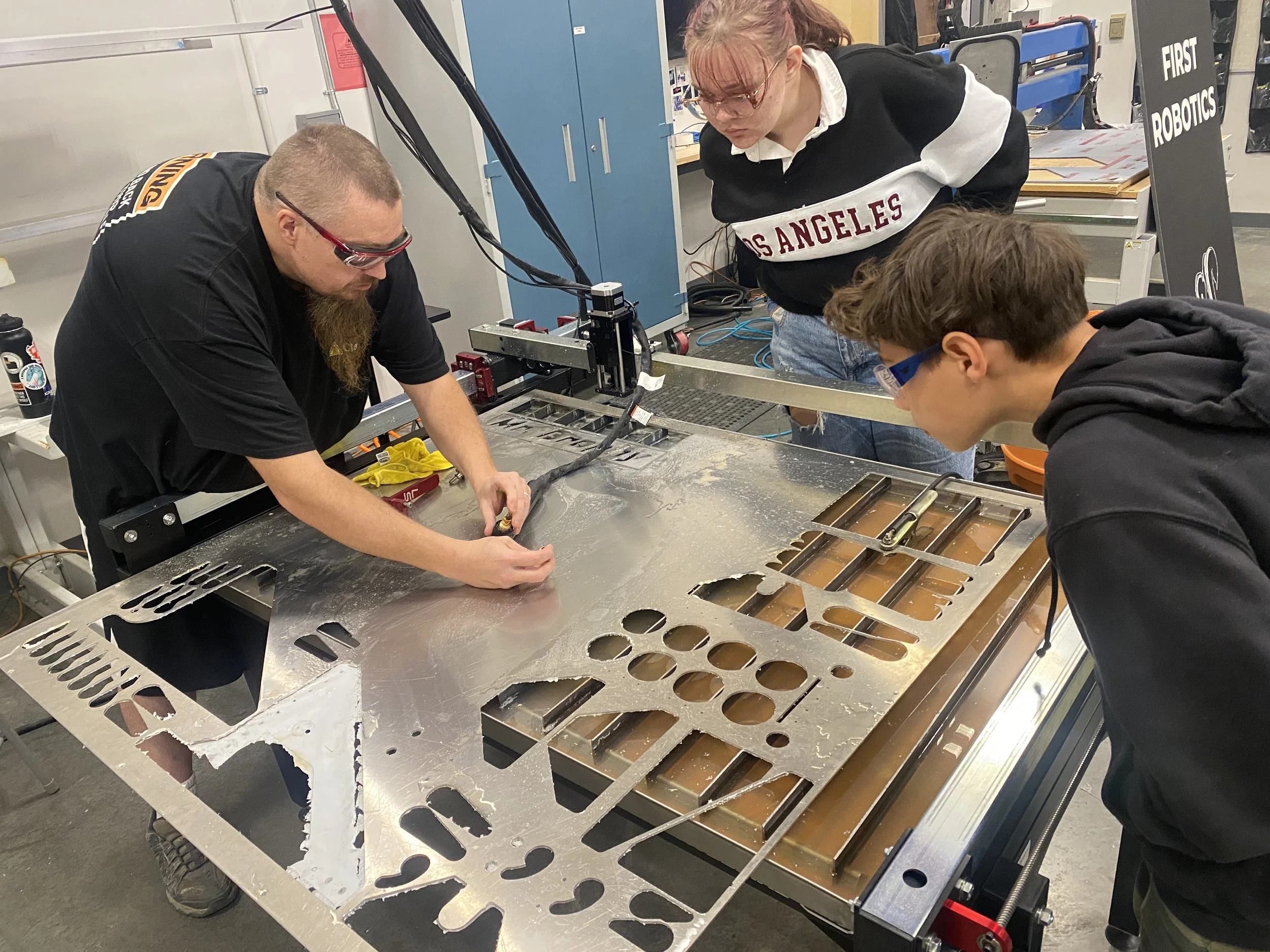 The Manufacturing committee produces the robot that the team competes with, at regionals and demonstrated at public outreach events. Members of the Manufacturing committee have general knowledge of computer-aided design software to document the process of building the robot in an engineering journal, and are able to collaborate with members of Control Systems to make a functioning robot. They are responsible for inventorying tools, fabricating parts, and preparing for competitions - all while maintaining workshop safety and sanitation standards.